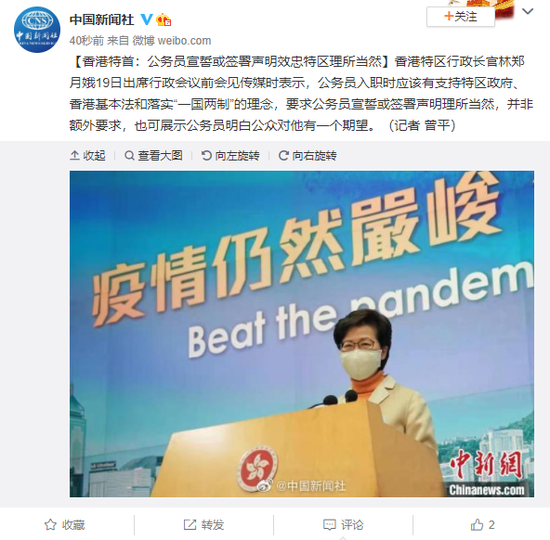 yobo体育app官方下载:香港特首:公务员宣誓或签署声明效忠特区理所当然