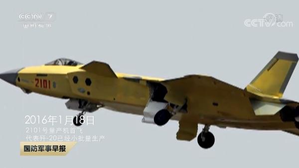 2016年1月18日,2101号量产机首飞,代表歼-20已经小批量生产