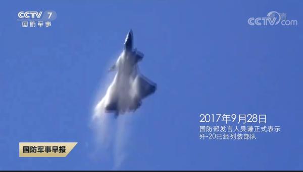 2017年9月28日,国防部承认歼-20已经列装部队