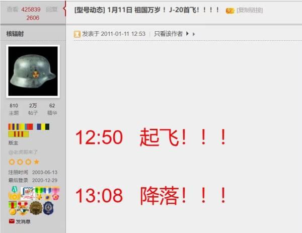 10年的今天,热心网友观测到歼-20首飞并机动的发帖 图源:社交媒体