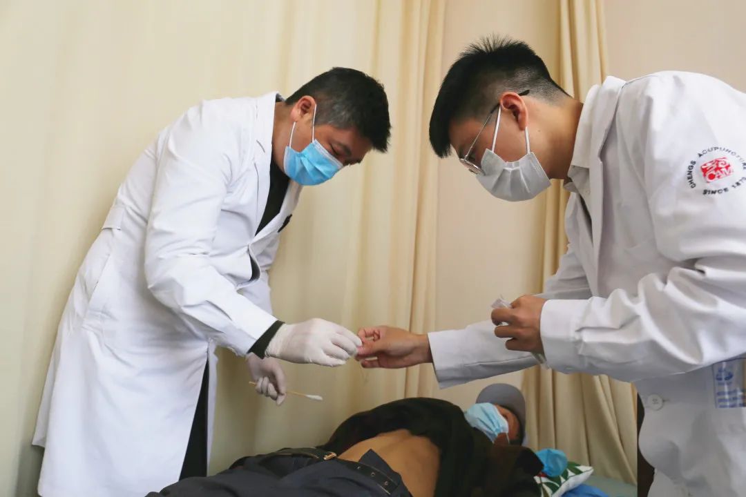 “您不用紧张,右边这肌肉确实比较僵硬,我先给您扎几针,后面还要去医院继续治疗。”