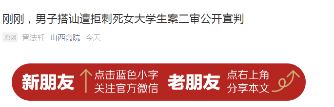 据山西高院4月19日消息,男子搭讪遭拒刺死女大学生案二审公开宣判。