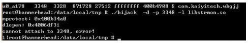 防注入 :动态注入一般使用如hijack工具,向指定进程中注入SO文件。防注入的保护方案通过对市场主流注入工具进行监测,保护整个程序生命周期的进程安全,阻止动态注入攻击。