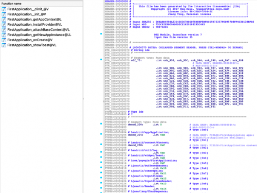 Android主要使用Java进行代码编写,开发完成后,编译器将Java代码打包进安装包中classes.dex文件中,有些程序业务较复杂,编译时会生成多个dex文件。因此,代码保护的首要目标就是Android安装包中的dex文件。