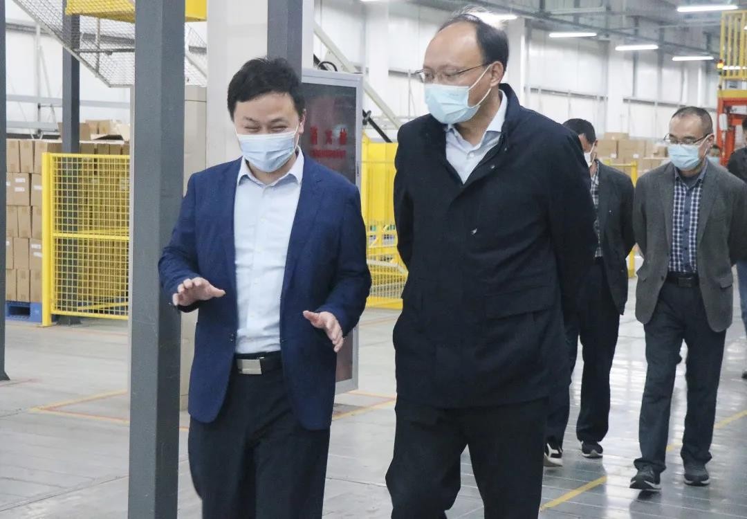 2021年4月20日,湖北省商务厅电商处李东福处长一行莅临唯品会华中运营中心调研指导,鄂州市商务局局长余国安、商务局内贸电商科科长余革非、葛店开发区经济发展局局长陈清海、副局长刘春伟等领导陪同调研。