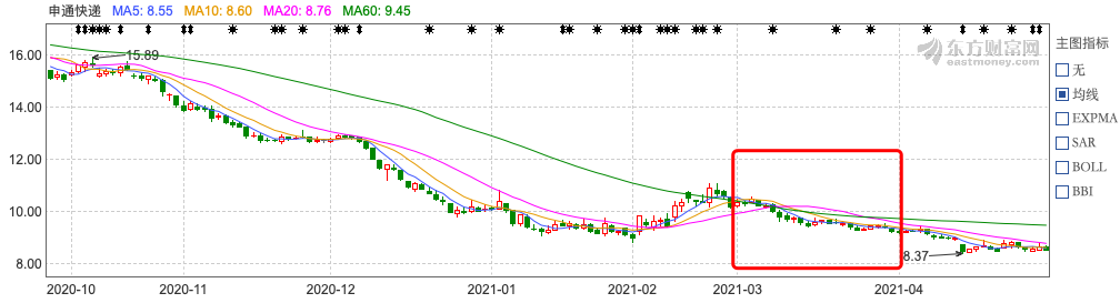 然则随即全部快递行业股价在3月集体陷入低迷。
