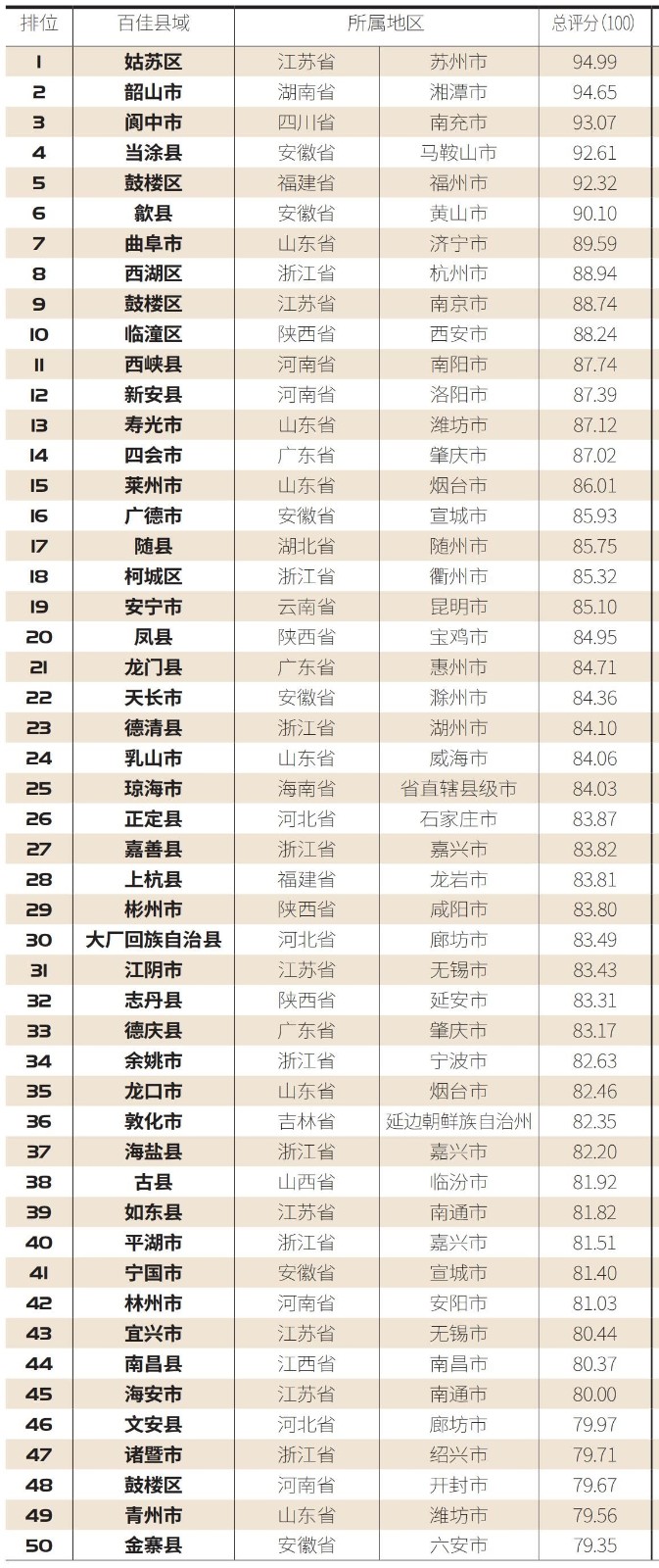 中西部地区县域在榜单中所占比例更大年夜在西部地区上榜的县域中