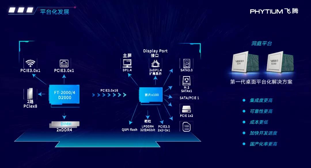 郭御风博士在演讲中介绍到,飞腾目前正在走平台化的发展路线,可提供给用户的不再是单颗CPU芯片,而是面向场景的整套解决方案。“ 例如飞腾即将推出的洞庭平台将支持多样化的异构算力平台,融入PSPA1.0架构的一体化内生安全,支持不同主板的软件二进制兼容,拥有丰富的I/O接口,完整支持客户计算场景需求”。