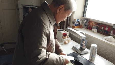 早上刚7点,杨庆久老人已经早早地吃了早饭,开始一件件收拾他准备好的东西。那张宝贵的黑白老照片他让女儿去照相馆放大后洗出了3张,他要当面送给张淑萍、张淑芳。