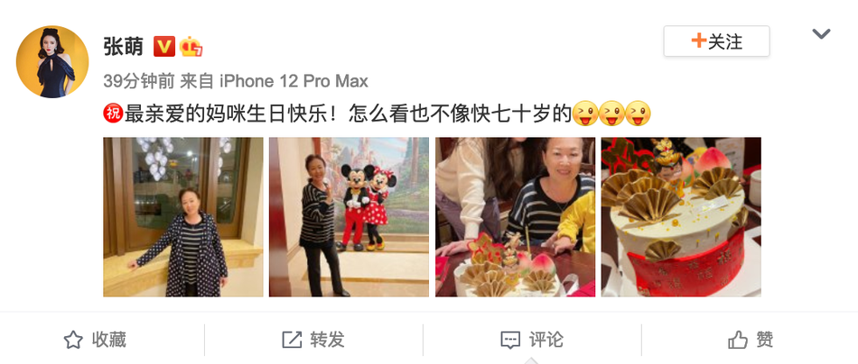 近日,张萌在社交平台晒出妈妈的照片,为其庆生,并大赞妈妈:“怎么看也不像快七十岁的!”照片中,张妈妈保养得宜,皮肤十分光滑,与女儿一同出镜,母女二人颜值好高。