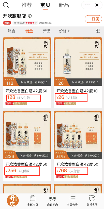 怪兽的优势是有足够的线下资源,这或许是开欢白酒能够迅速打开局面的一个筹码。但值得注意的是,在传统电商平台上,这个优势贡献有限,通过上述开欢白酒的天猫店铺销量数据不难发现,当前似乎并没有足够多的消费者为该白酒买单。